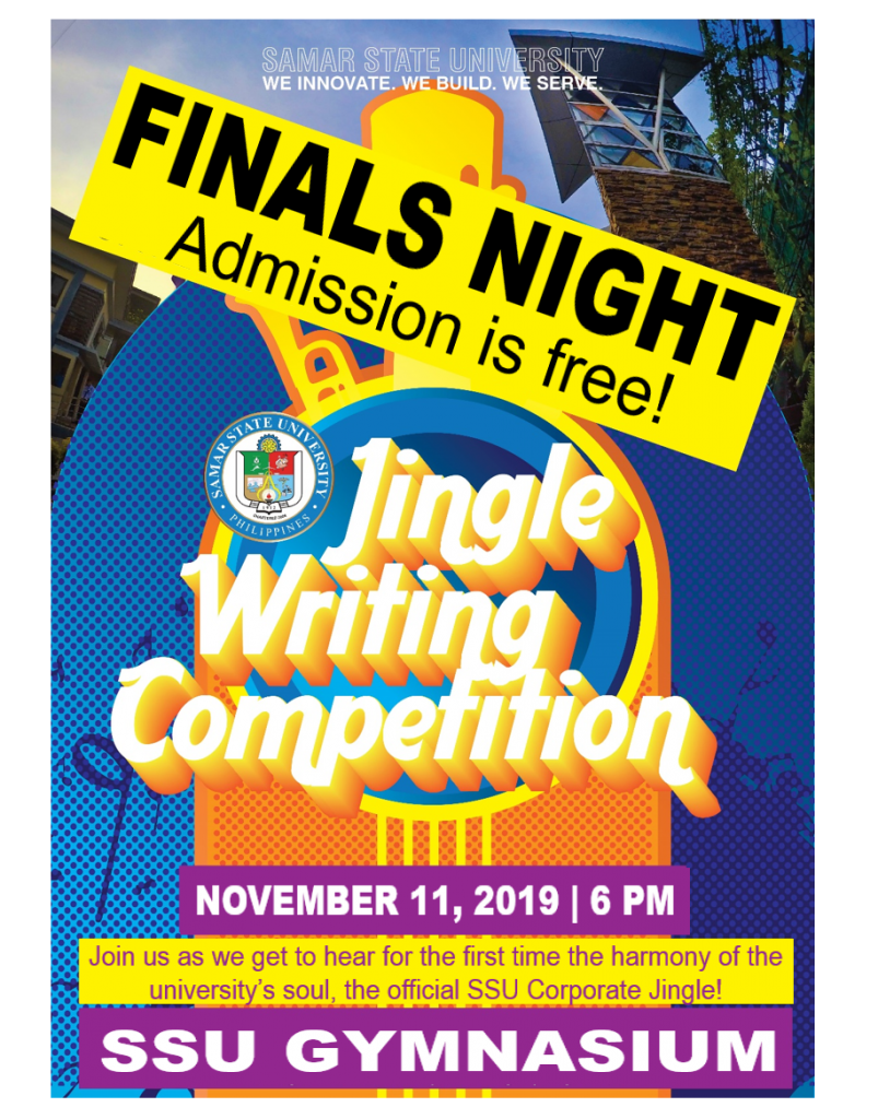 We invite you to the Finals Night of the Jingle Writing Competition on November 11, 2019, 6 PM, at the SSU Gymnasium.