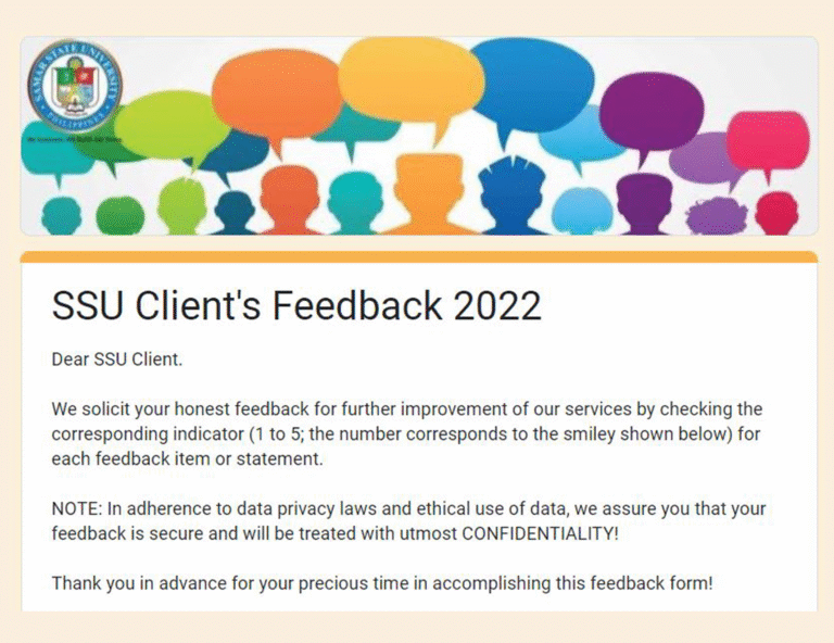 As part of SSU’s move for continual improvement and customer satisfaction, we would like to request you to fill out the Clients Feedback form through the link below. Rest assured that all information provided will be treated with confidentiality and for the purpose mentioned only. Thank you!