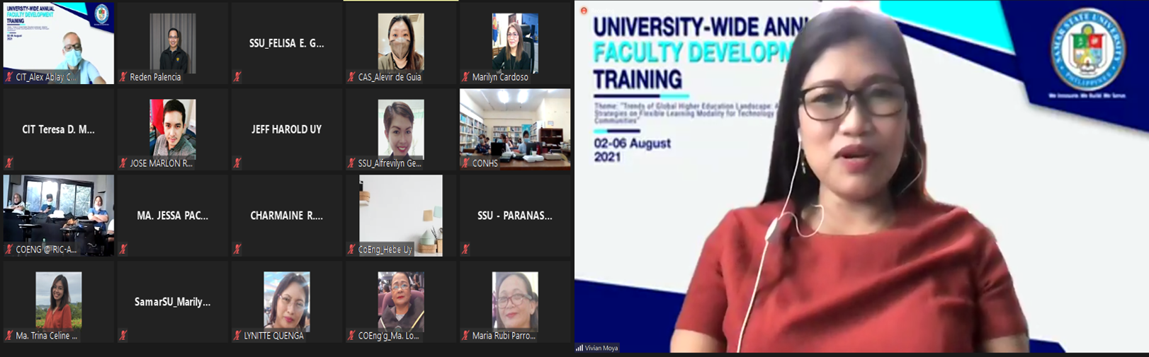 CATBALOGAN CITY – As part of the University-Wide Annual Faculty Development Training, Samar State University (SSU) faculty members listened to the lecture of Dr. Vivian L. Moya, Director of the Intellectual Property and Technology Business Development Office (IPTBDO), on Copyrighting during the second-day (August 3,2021) of the weeklong In-House Training.