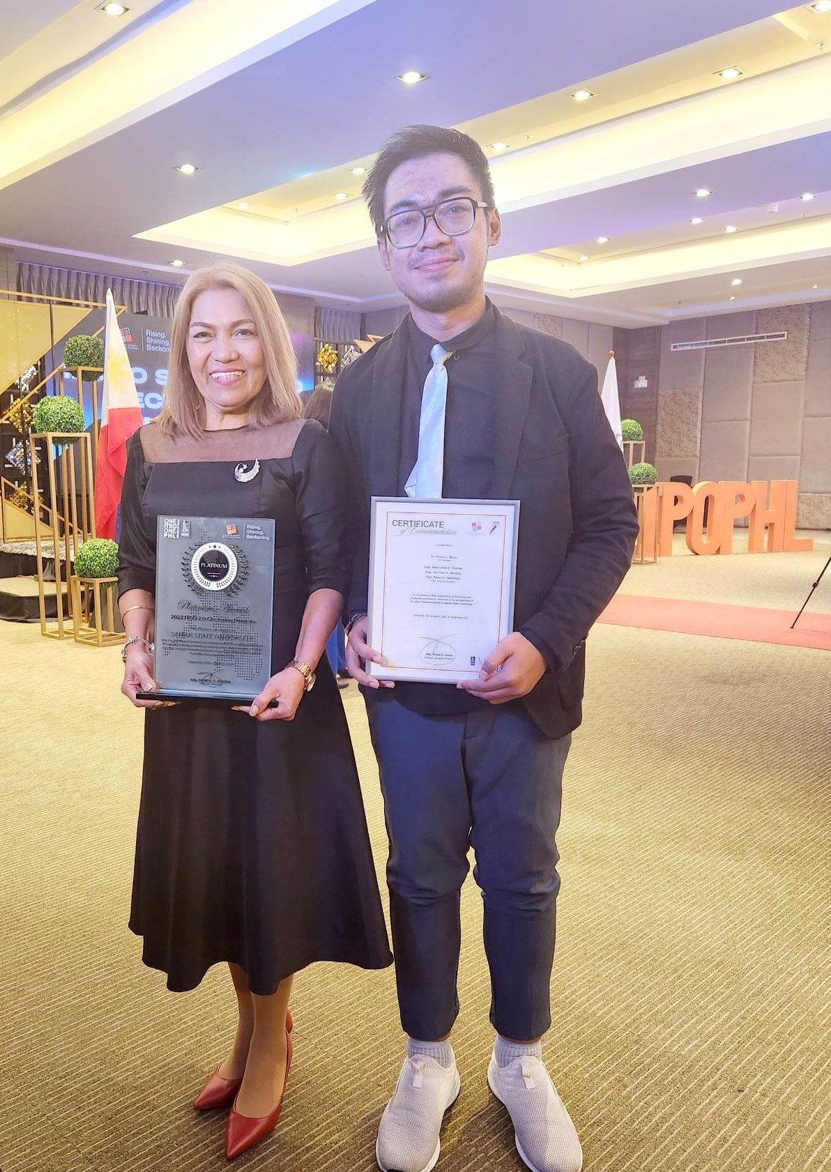 CATBALOGAN CITY─ Being able to fulfill the ITSO 2.0 Clustering deliverables in the year 2022, Samar State University (SSU) received for the third time since 2020 the recognition as Platinum Awardee and mentioned as qualified for the Bronze, Silver, and Gold Awards by the Intellectual Property Office of the Philippines (IPOPHL) today, March 28 (23), at Sequoia Hotel Manila Bay.