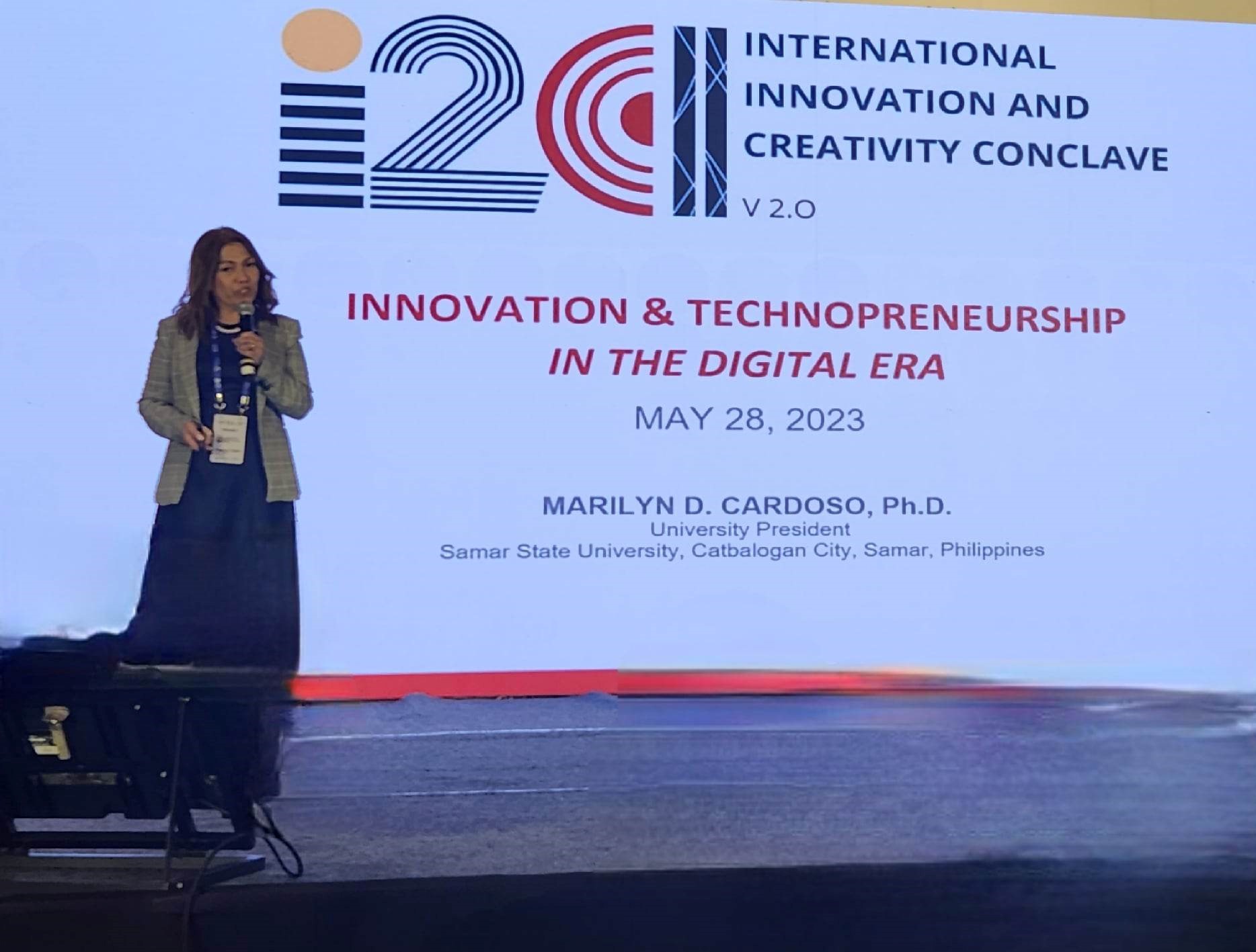 CATBALOGAN CITY─ Dr. Marilyn D. Cardoso, President of Samar State University (SSU), delivered a highly relevant presentation titled “Innovation and Technopreneurship in the Digital Era” at the prestigious International Innovation and Creativity Conclave (I2C2) Version 2.0 held on May 28-30 (23) at Visakhapatnam, Andra Pradesh, India.