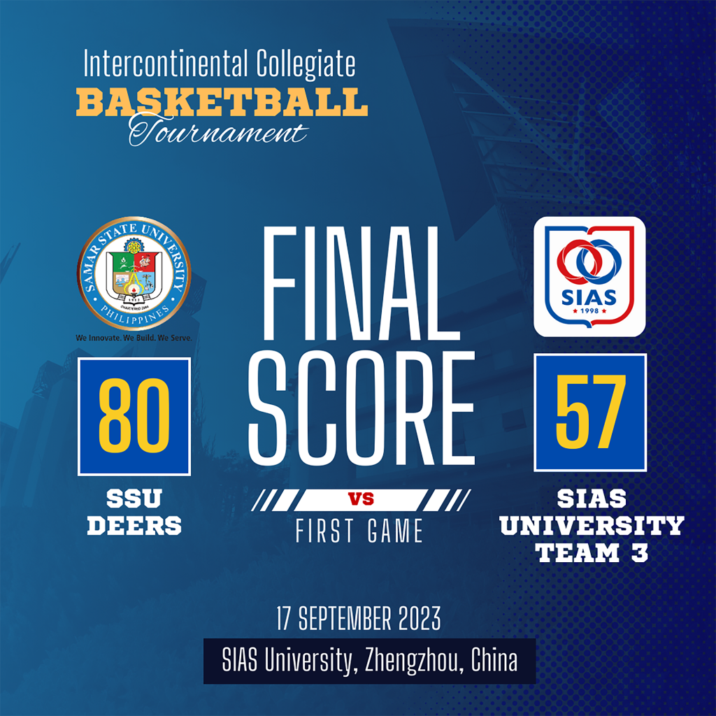 Zhengzhou, China — In a thrilling showdown, Samar State University (SSU) Deers emerged victorious on their first game against SIAS University Team 3 during the 2nd Day of the Intercontinental Collegiate Basketball Tournament in Zhengzhou, China yesterday, September 17 (23), with a final score of 80-57, demonstrating the Deers’ dominance in the basketball court.
