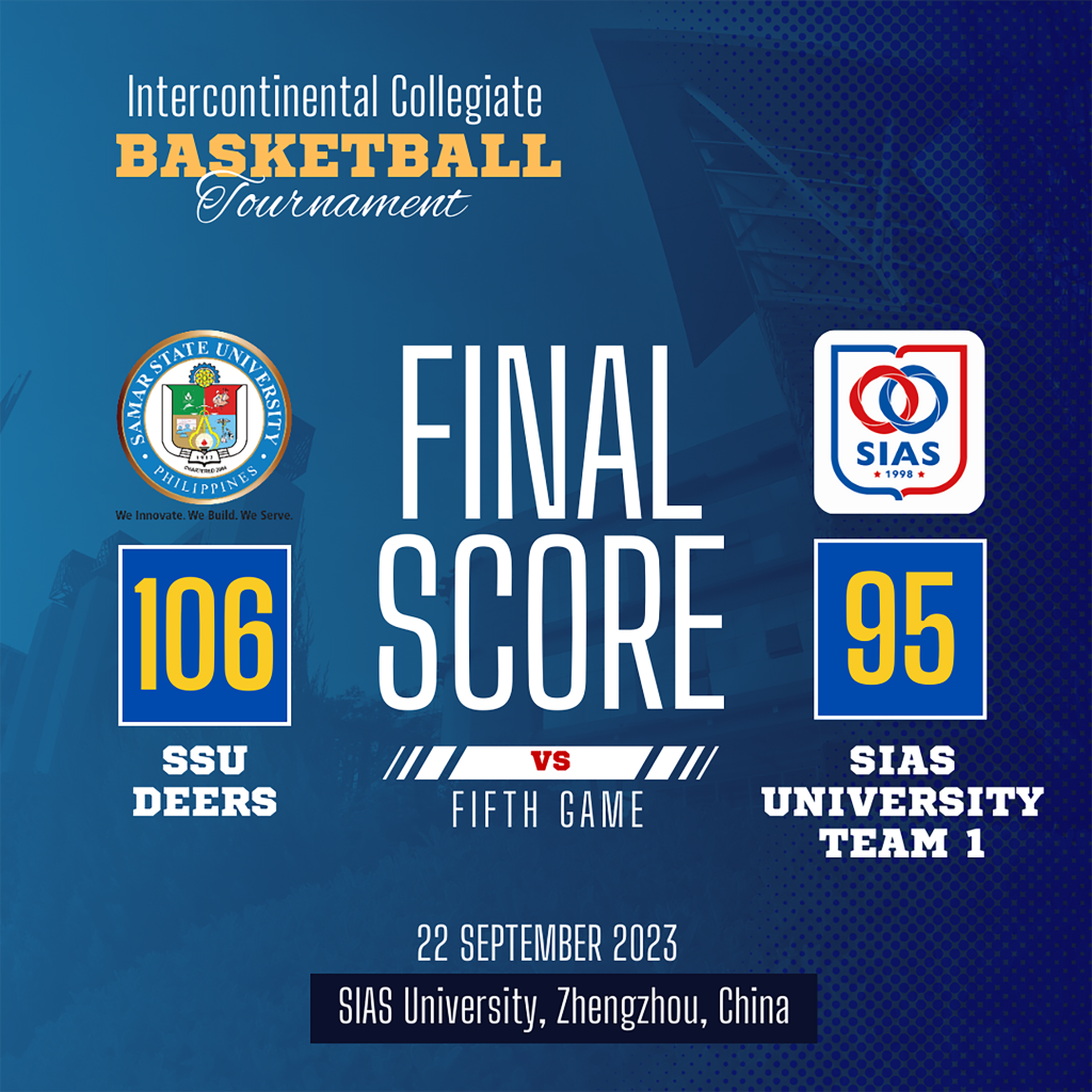 Zhengzhou, China— With a perfect 5-0 record, Samar State University (SSU) Dexterous Deers conclude the Intercontinental Collegiate Basketball Tournament in Zhengzhou, China as Champions as they outgun Sias University Team 1 106-95 in Game 5 yesterday, September 22 (23).