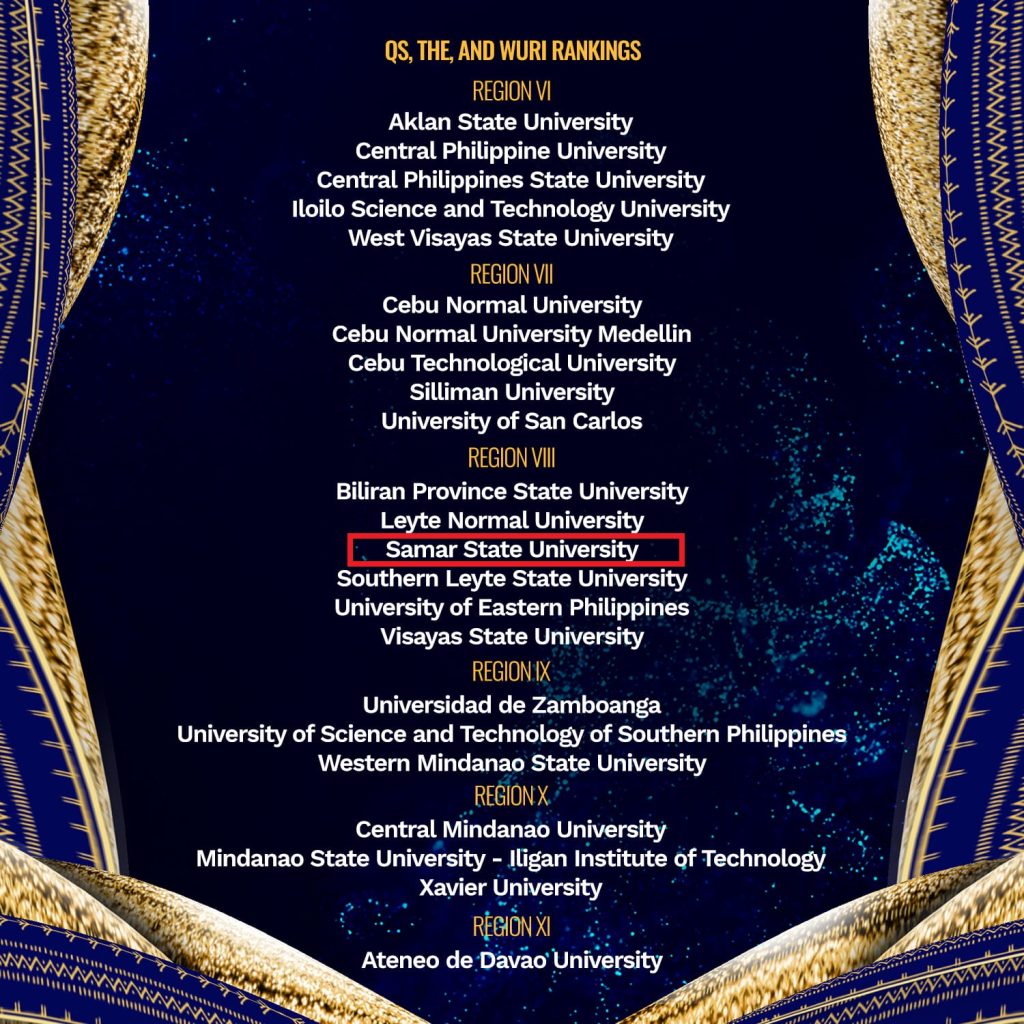 CATBALOGAN CITY─ Coveting the highest spot (Top 1 in the World) for two (2) succeeding years─ 2022 & 2023─ under the Fourth Industrial Revolution category by World University Rankings for Innovation (WURI), being rated for excellence with three (3) Stars by Quacquarelli Symonds (QS), and as one of the ASEANWAVE WEBXHIBITION and Festival National Awardees under the Interactive Painting category, Samar State University (SSU) is among the celebrated Philippine Higher Education Institutions in the ICONS AWARDS 2023 bound to happen on October 6 (23). The Internationalization (IZN) Champions of Nations Building and Sustainability Awards 2023 is a pinnacle of excellence award given by the Commission on Higher Education through its International Affairs Service.