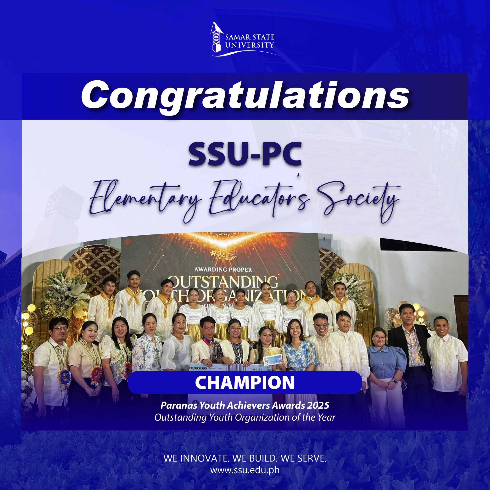 SSU PC Elementary Educators Society is Outstanding Youth Organization of the Year Leave a Comment / Academics, Administration, News, Paranas Campus / Admin SSU PC Elementary Educators Society is Outstanding Youth Organization of the Year Read More »