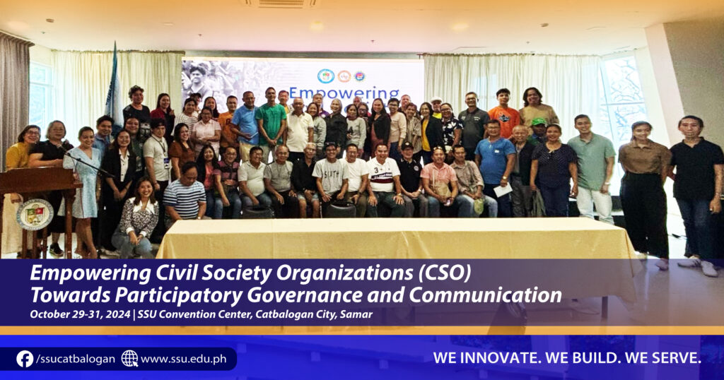 CATBALOGAN CITY, Philippines – Samar State University (SSU) in partnership with the Samar Provincial People’s Council (SPPC), Samar Provincial LGU, and the Department of Interior and Local Government (DILG) – Samar, spearheaded a three-day training activity called, “Empowering Civil Society Organizations (CSO) Towards Participatory Governance and Communication,” held from October 29 to 31, 2024 at