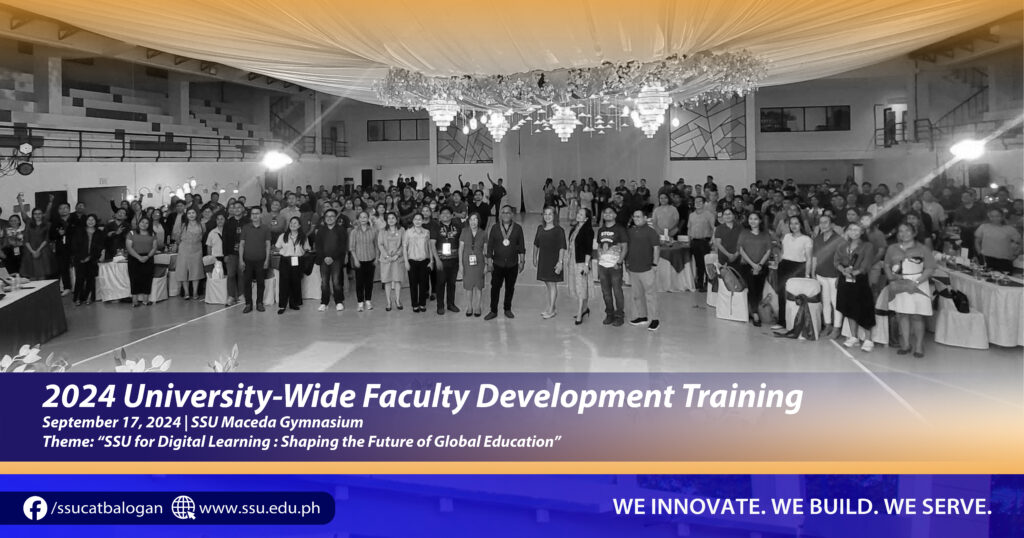 CATBALOGAN CITY, Philippines —229 faculty members of Samar State University (SSU) joined the official opening of the 2024 University-Wide Annual Faculty Development Training (FDT) on September 17 (24) at the SSU Maceda Gymnasium, Catbalogan City, Samar. This year’s FDT, hosted by the Office of the Vice-President for Academic Affairs (OVPAA), featured the theme, “SSU for
