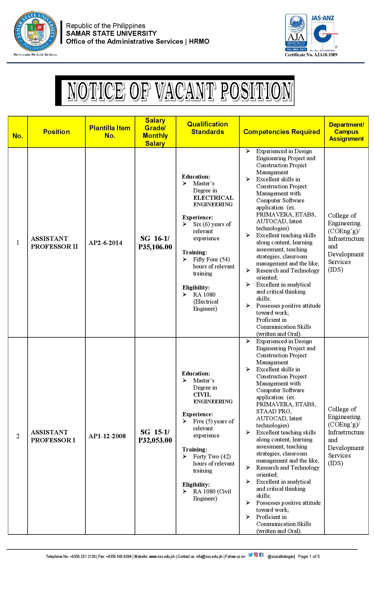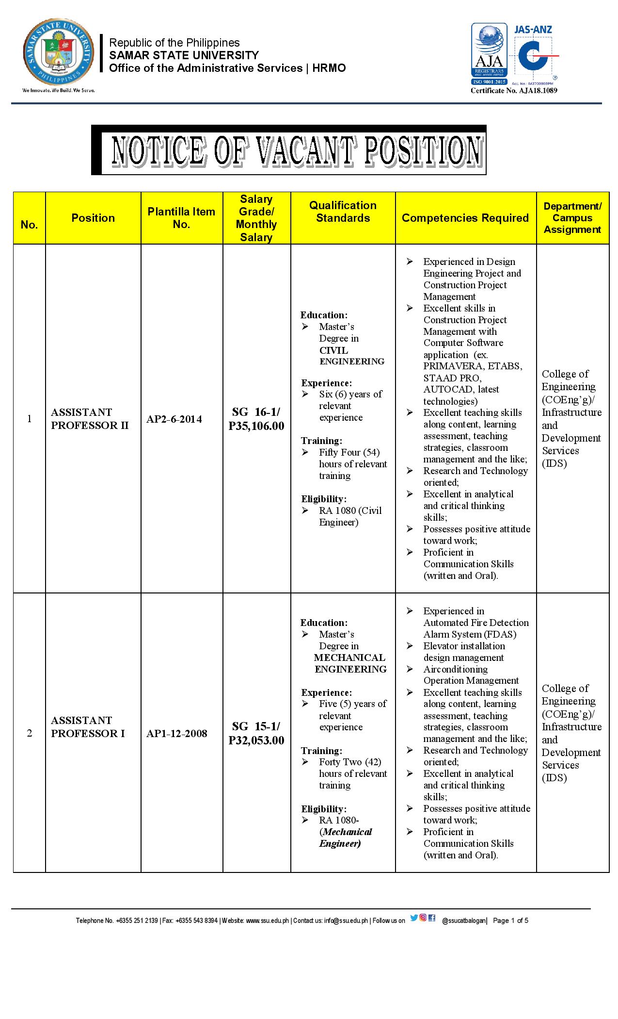 Notice of Vacant Positions (November 10, 2020) Leave a Comment / Job Vacancy / Marilyn Sintos Notice of Vacant Positions (November 10, 2020) Read More »
