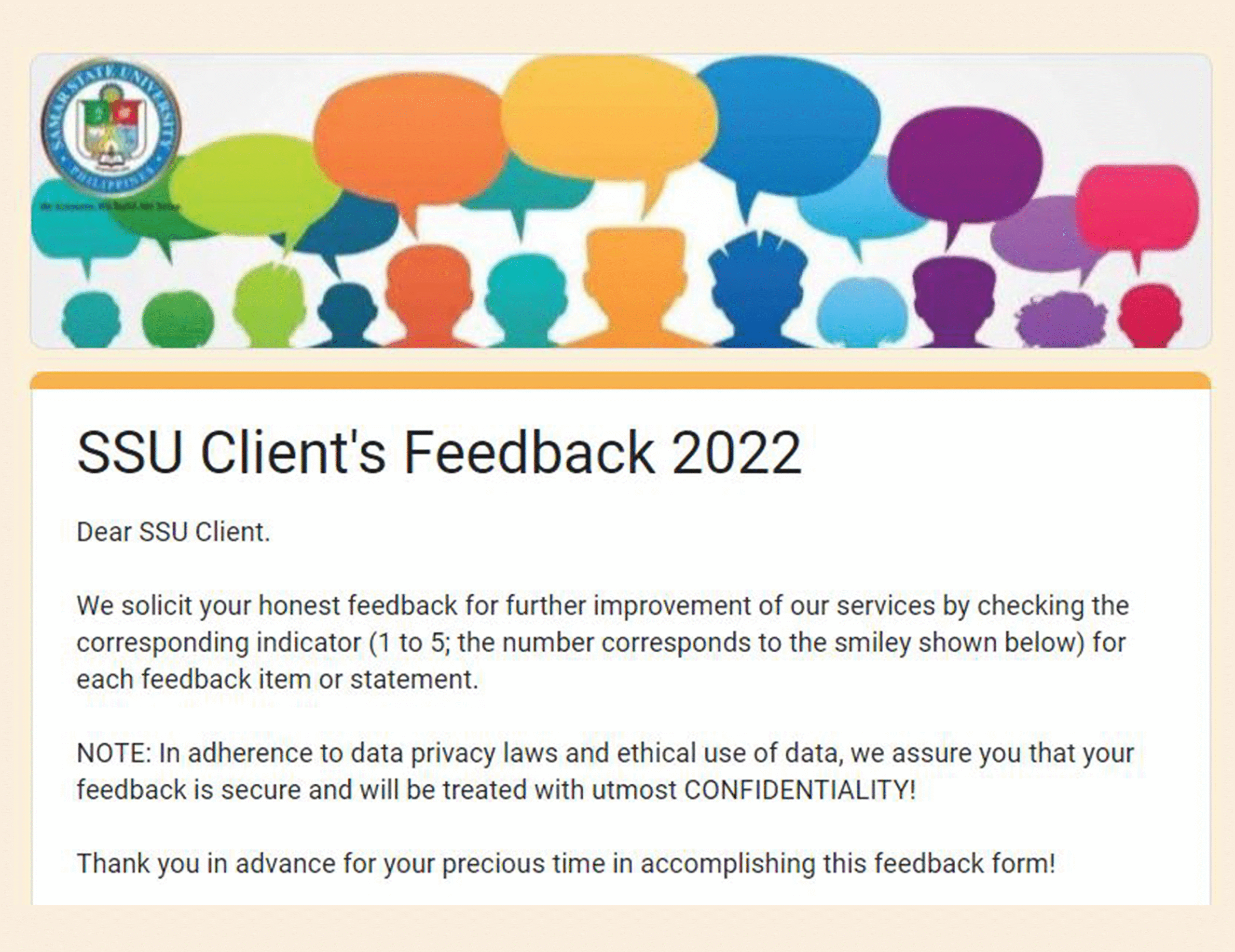 ADVISORY DATED SEPTEMBER 24, 2020 TO: ALL CONCERNED SSU PERSONNEL SUBJECT: TEMPORARY SUSPENSION OF OFFICE TRANSACTIONS With the exposure of some personnel to COVID-19 positive individual/s, transactions in the following offices are temporarily SUSPENDED until further notice: 1. Research and Innovation Center (RIC) 2. Registrar’s Office 3. College of Engineering 4. Office of the Director
